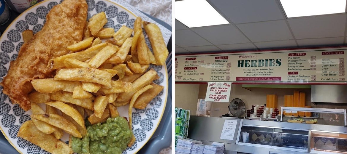 We stayed in Bournemouth for 5 nights after doing the half marathon, we ate at Herbies Fish & Chips twice out of the five nights of our trip due to how delicious the food was! Would highly recommend! One large portion of fries easily suits two people.